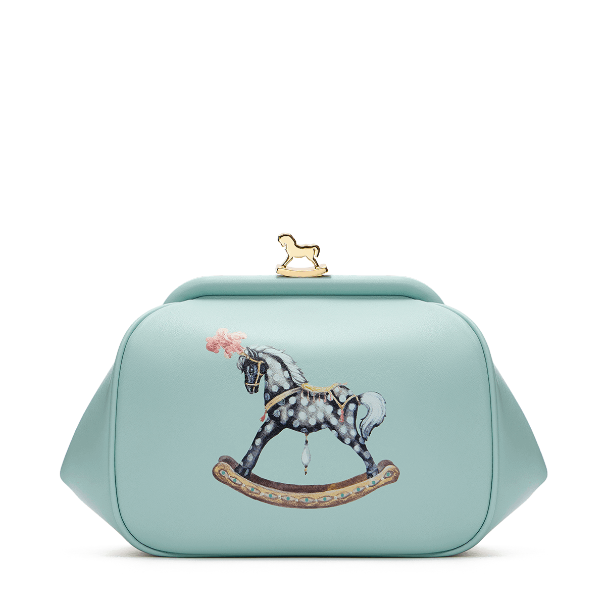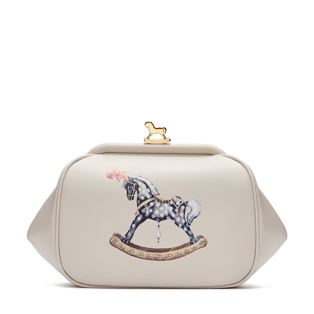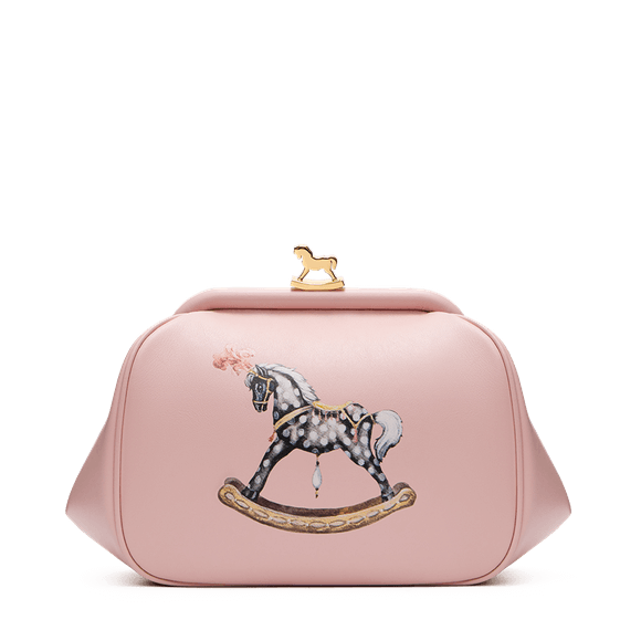 Легендарная модель Ulya, с которой началась линия аксессуаров бренда, возвращается в новом прочтении. Форма, вдохновлённая ридикюлями 50-х годов, культовая фермуарная застёжка с позолоченной лошадкой и мягкая кожа — теперь в четырёх оттенках: нежно-розовом и голубом, насыщенно-красном и бежевом. Особый акцент — принт с серебристой лошадкой-качалкой, добавляющий наивности и иронии.